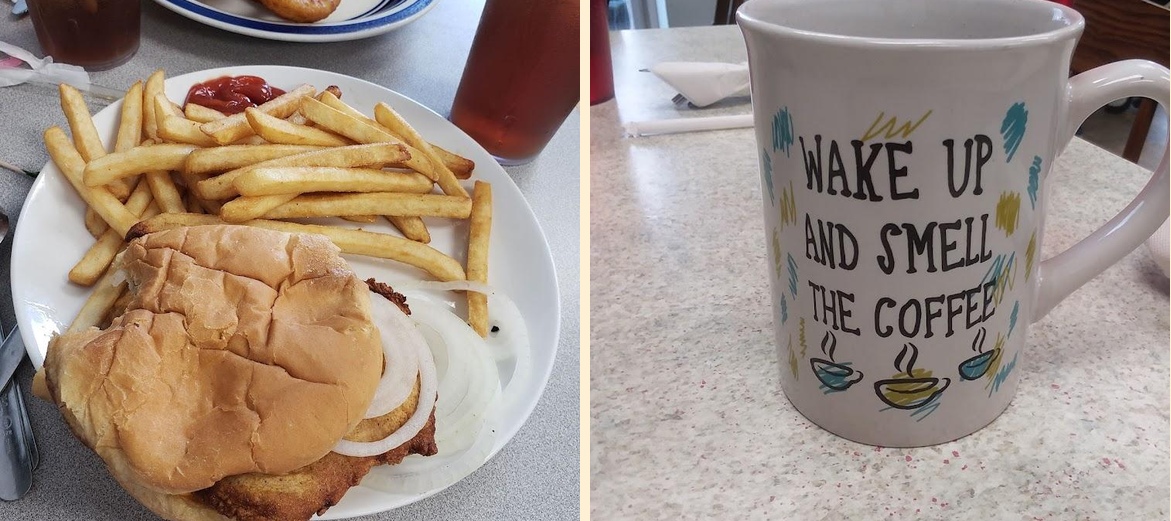 Start your day here with made-to-order breakfasts. Fluffy pancakes and hearty omelets are popular choices. For lunch, the cheeseburger and country fried steak receive rave reviews. Portions are generous, satisfying even the heartiest of appetites.